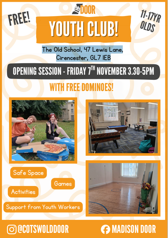 A local community opportunity for young people to get involved in free youth group sessions at the Cirencester Impact Youth Centre. The sessions, organised by Family Action and commissioned by Gloucestershire County Council, are open to all and require no booking—just turn up on the night!