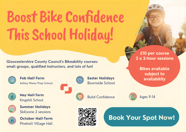 Gloucestershire County Council is offering Bikeability courses during all 2026 school holidays. These courses are designed for children aged 9–14 and help build cycling confidence and safety skills in small groups with qualified instructors.