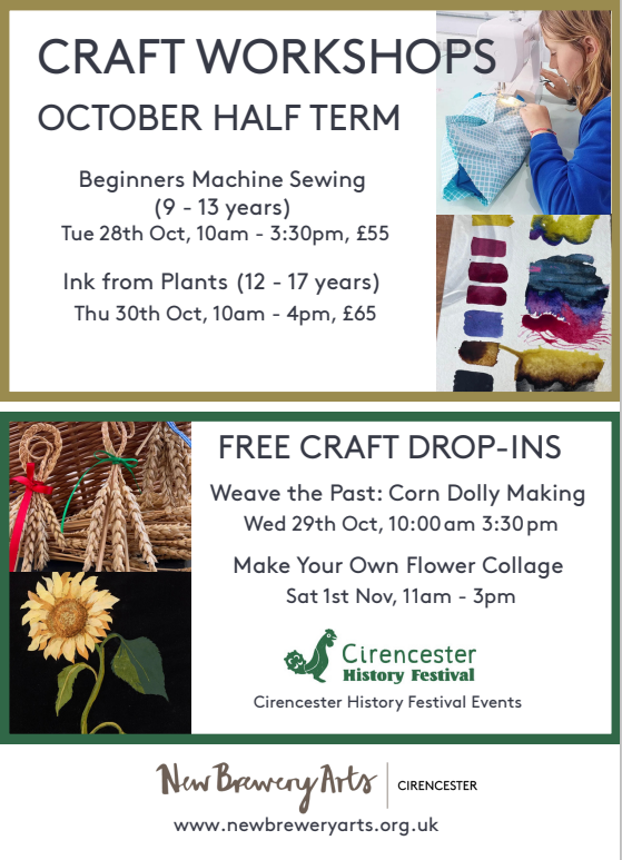 New Brewery Arts is located in the centre of Cirencester. They have some great craft activities coming up over the October half term. In addition to their own sessions, they have partnered with the Cirencester History Festival to offer two fantastic free drop-in sessions for all the family.