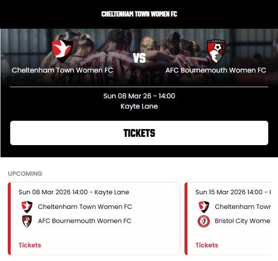 Cheltenham Town Women FC have three home fixtures this March at Kayte Lane Stadium, GL52 3PD. Matches will take place on Sunday 8 March, Sunday 15 March and Sunday 22 March, with each game kicking off at 2.00 pm and gates opening at 12.30 pm.